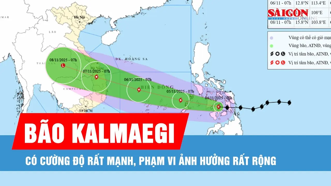 Bão Kalmaegi đã tăng cấp nhanh chóng, đạt cấp 13, giật cấp 16 khi càn quét miền Trung Philippines và đang tiến vào Biển Đông sáng ngày 5/11, chính thức trở thành cơn bão số 13 trong năm 2025. Dự báo bão sẽ tiếp tục mạnh lên đến cấp 14, giật cấp 17 khi di chuyển vào vùng biển giữa Biển Đông và khu vực ngoài khơi từ Đà Nẵng đến Khánh Hòa. Cơn bão có tốc độ di chuyển rất nhanh, khoảng 20-25km/h, hướng tây tây bắc, dự kiến đổ bộ vào đất liền từ Quảng Ngãi đến Đắk Lắk vào sáng ngày 7/11 với sức gió mạnh cấp 11-14, giật cấp 14-17.