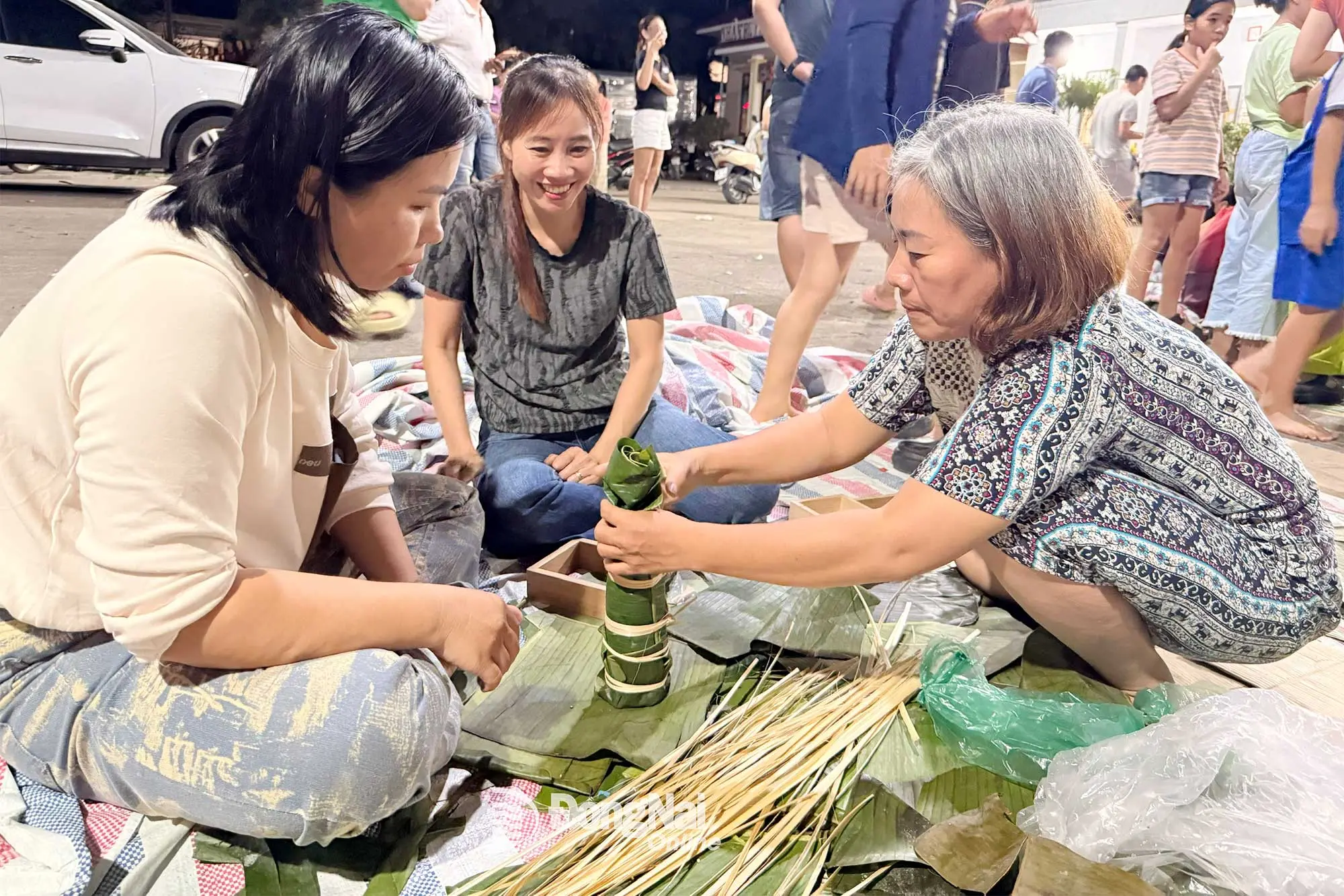 Rạng sáng 23/11, tại Nhà văn hóa phường Trảng Dài (Đồng Nai), ánh đèn vẫn sáng rực, tiếng cười nói rộn ràng vang khắp sân. Hàng trăm người dân từ già đến trẻ, nam lẫn nữ, tay thoăn thoắt gói những chiếc bánh chưng, bánh tét, chuẩn bị cho chuyến xe cứu trợ hướng về miền Trung. Không ai bảo ai, ai cũng tự giác nhận việc: người vo gạo, người rửa lá, người xắt thịt, người gói bánh. Không khí khẩn trương, nhưng tràn đầy tình người. Những chiếc bánh được gói xong liền chuyển ra bếp, nơi hơn mười nồi lớn đang đỏ lửa, chờ đón từng đòn bánh để kịp nấu chín trước khi lên đường.