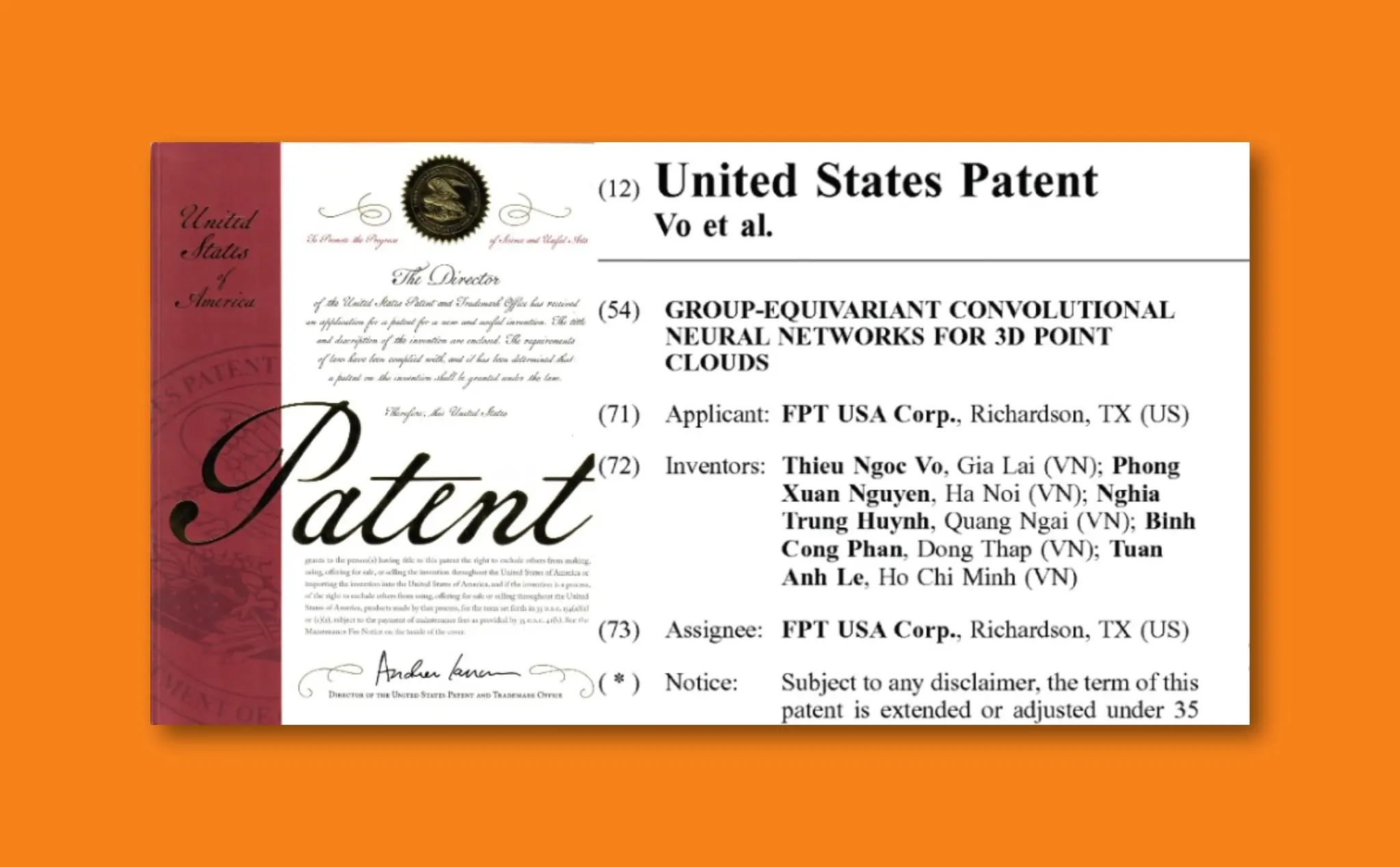 Không chỉ dừng lại ở phát hiện âm thanh, công nghệ mạng nơ-ron tạo sinh của FPT còn được ứng dụng để phát triển AI4Code – trợ lý lập trình thông minh, giúp nâng cao hiệu suất làm việc của nhân viên và cải thiện chất lượng sản phẩm phần mềm. Với định hướng AI-First, FPT tích hợp trí tuệ nhân tạo vào mọi giải pháp, từ đó giải quyết những bài toán thực tiễn phức tạp, đáp ứng các tiêu chuẩn quốc tế khắt khe trong nghiên cứu và ứng dụng AI. Danh mục bằng sáng chế ngày càng mở rộng của FPT được củng cố bởi hạ tầng AI mạnh mẽ, với các Nhà máy AI hiện đại tại Việt Nam và Nhật Bản, trang bị GPU NVIDIA và nằm trong Top 40 siêu máy tính nhanh nhất thế giới.