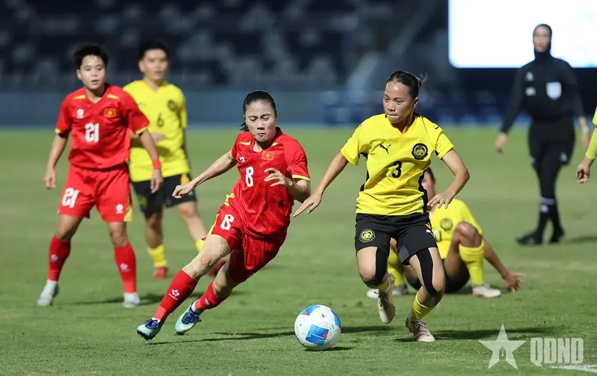 Chỉ trong 45 phút đầu tiên, tuyển nữ Việt Nam đã biến trận đấu thành buổi tập mang tính hủy diệt. Bóng gần như không lăn bên phần sân nhà, hàng thủ Malaysia chao đảo trước những pha khoét biên, phối hợp nhanh và đặc biệt là khả năng không chiến vượt trội. Bích Thùy nhân đôi cách biệt bằng cú đánh đầu lạnh lùng, Hải Yến hoàn tất cú đúp với pha bật cao đánh đầu hiểm hóc, rồi đến lượt Trần Thị Hải Linh tung ra cú dứt điểm một chạm tinh tế để ấn định tỷ số 4-0 trước giờ nghỉ. Mỗi bàn thắng là một minh chứng cho sự khác biệt đẳng cấp, cho sự chuẩn bị kỹ lưỡng và tinh thần chiến đấu của những nữ chiến binh sao vàng.