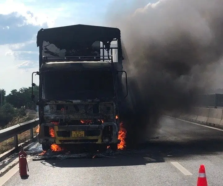 Sáng ngày 9/10, trên cao tốc Vĩnh Hảo – Phan Thiết đoạn Km181 thuộc xã Lương Sơn, tỉnh Lâm Đồng, một chiếc xe container chạy hướng Bắc – Nam đã bất ngờ bốc cháy ngùn ngụt ngay khi vừa qua nút giao quốc lộ 28B khoảng 2km. Tài xế nhanh chóng phát hiện khói và lửa bốc lên từ phần đầu xe nên đã kịp thời đánh lái vào lề và thoát khỏi cabin an toàn trước khi ngọn lửa lan nhanh.